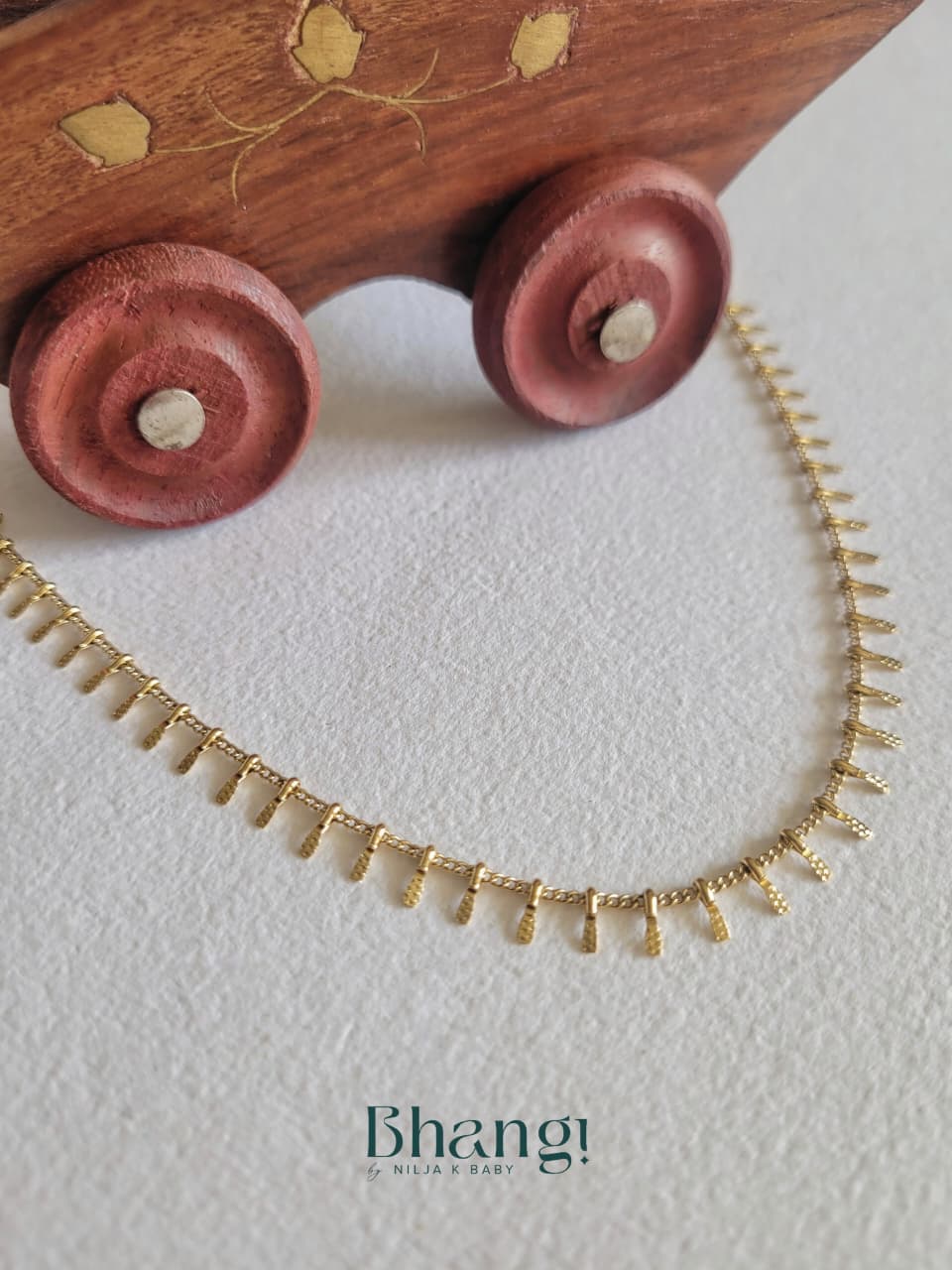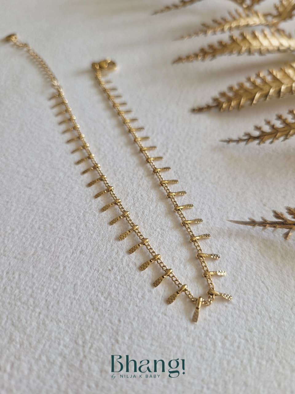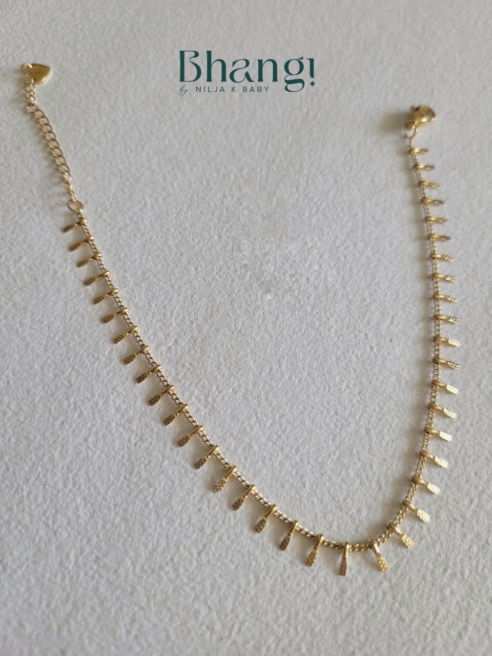 Delicate and effortlessly chic, the Golden Whisper Anklet features fine gold-tone links adorned with tiny textured drops that sway softly with every step. Minimal yet eye-catching, this anklet adds a subtle sparkle to your ankles, making it perfect for everyday wear or breezy festive looks. Crafted with premium anti-tarnish finish, it’s designed to stay radiant, lightweight, and comfortable all day long—just like a quiet golden whisper following you wherever you go.