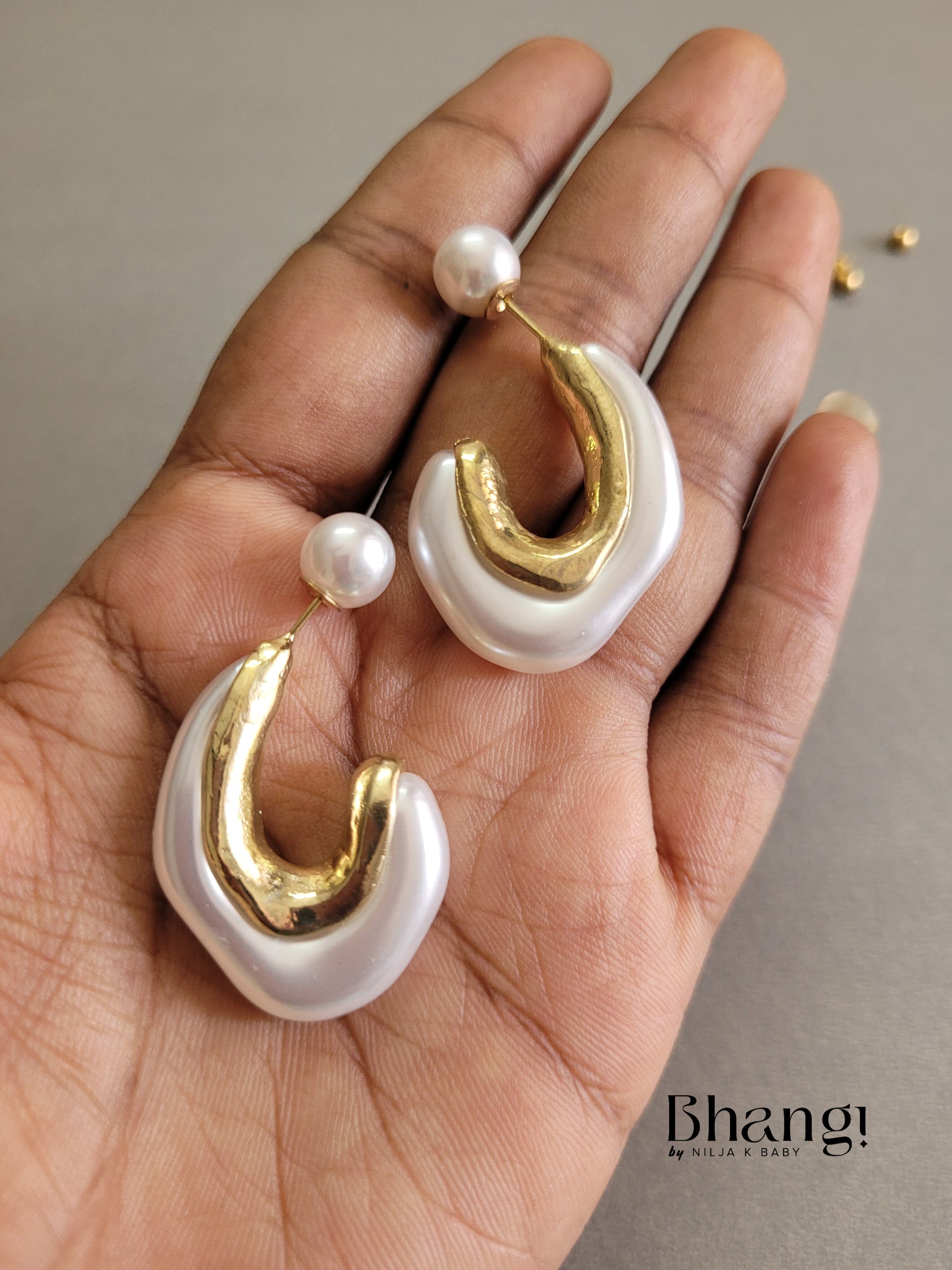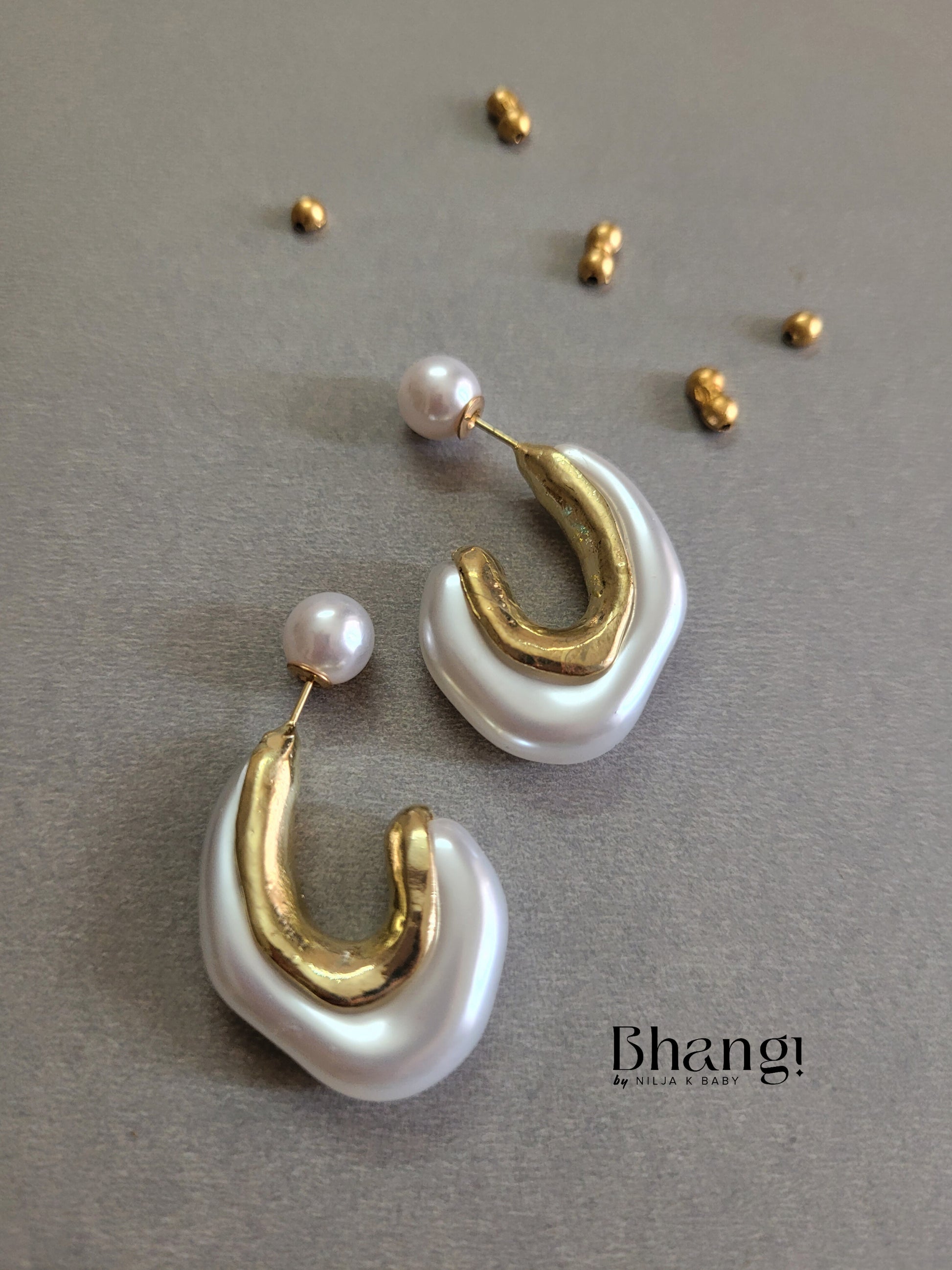 Elevate your everyday style with the Bhangi Gold-Tone Pearl Hoop Earrings. These classic hoops feature a modern twist with a unique, asymmetrical design. The shimmering freshwater pearls add a touch of elegance, while the gold-toned frame provides a luxurious finish. Crafted with pride in India, these earrings are the perfect accessory for adding a touch of sophistication to any outfit.