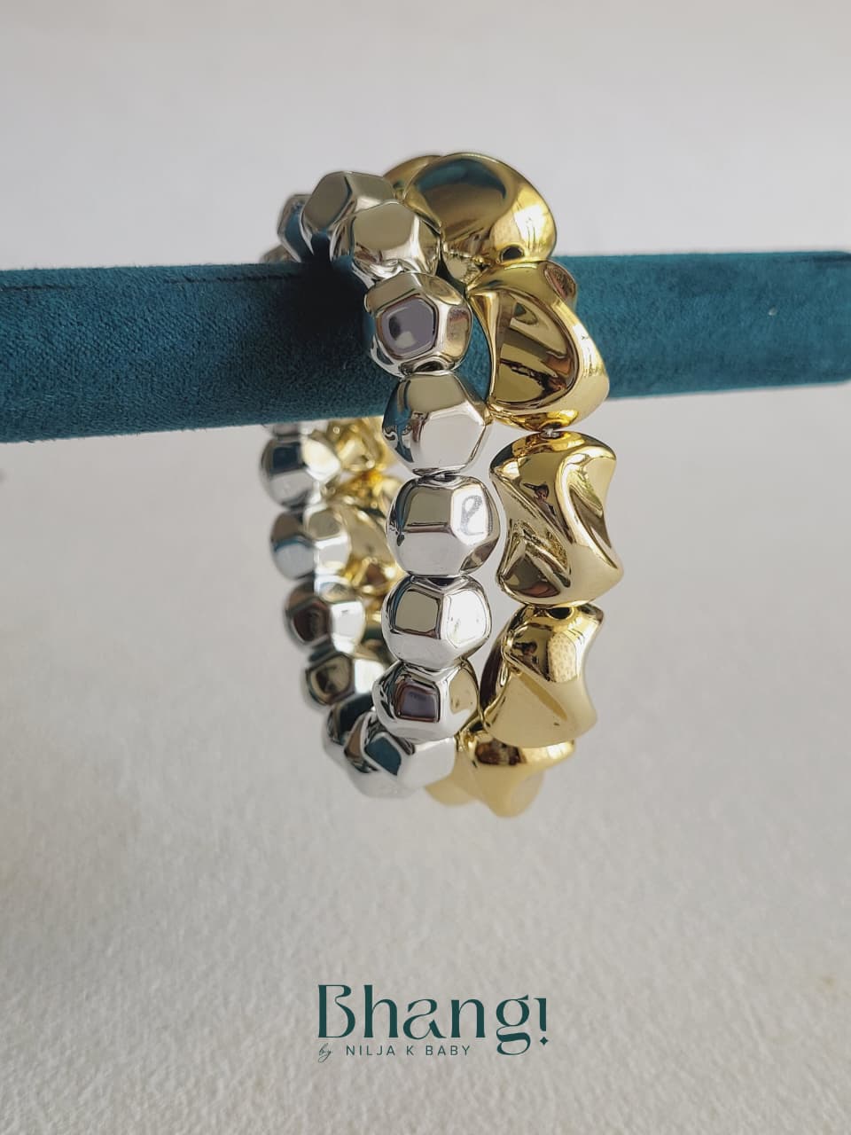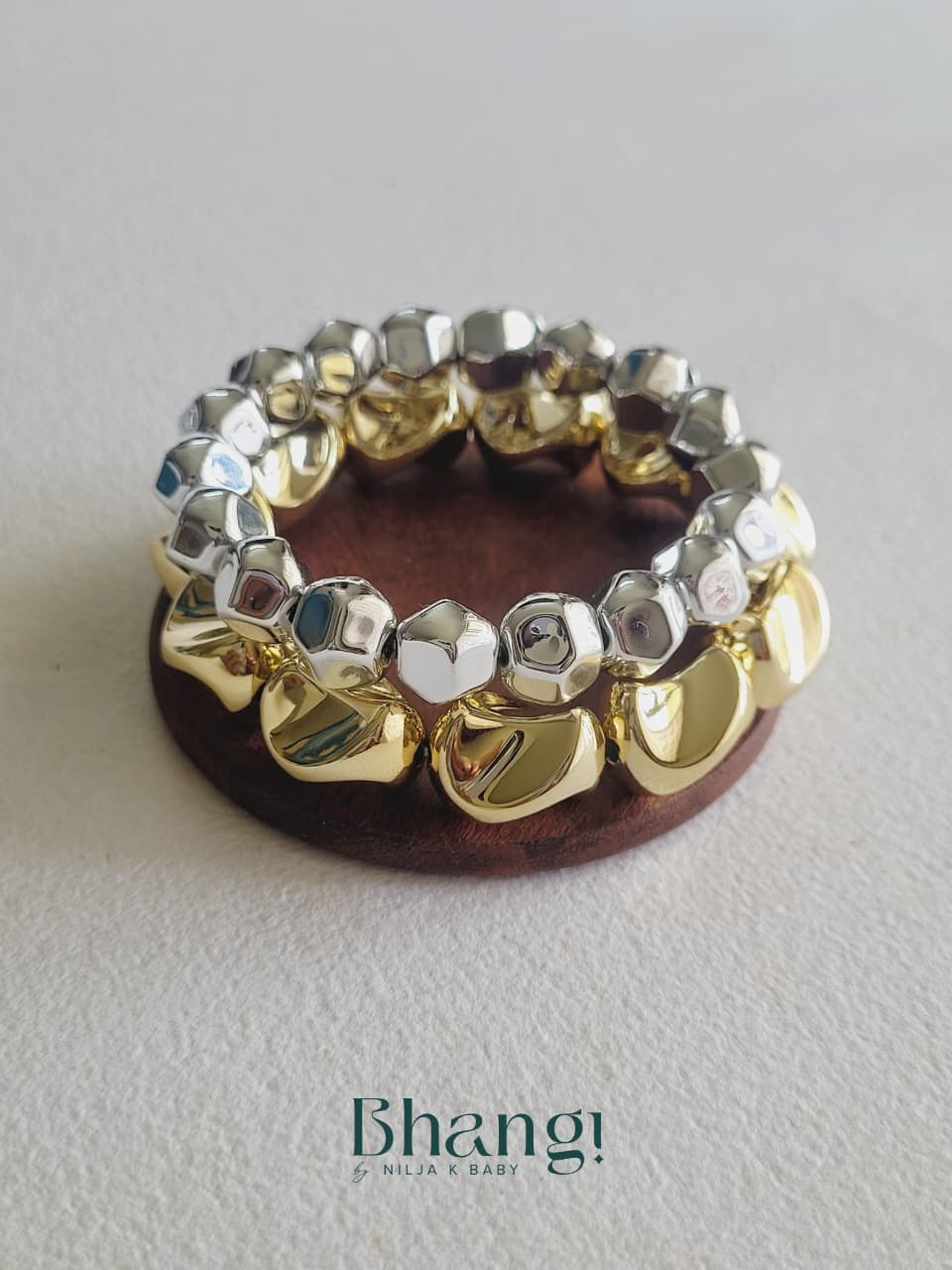 Crafted using copper coated beads (CCB), these bands offer the luxe appearance of metal jewellery while remaining lightweight and easy to wear all day.