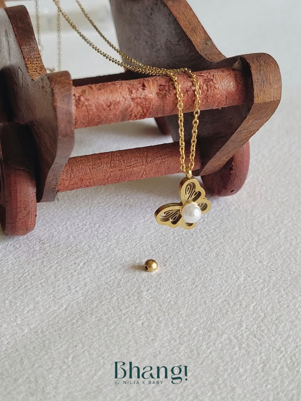 A delicate butterfly charm paired with a soft pearl accent, the Pearl Flutter Necklace captures grace in motion. Crafted in a sleek gold finish, it’s light, elegant, and effortlessly feminine—perfect for everyday wear or subtle layering. A timeless piece that adds a gentle sparkle and charm to your look without feeling overpowering.