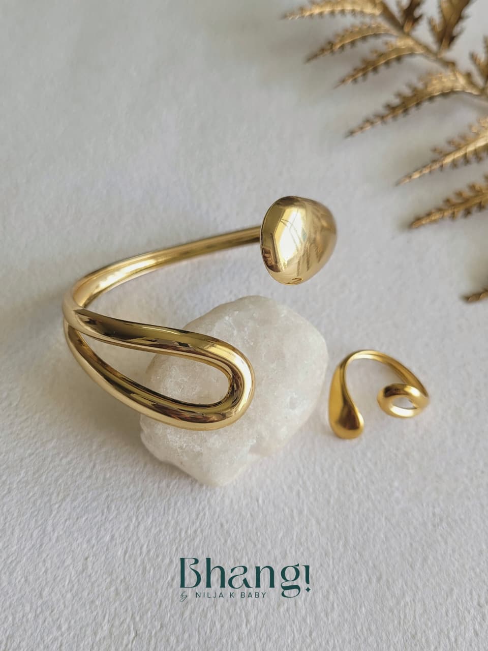Sculptural and striking, the Fluid Gold Cuff & Ring Set features smooth, flowing curves that wrap elegantly around the wrist and finger. The open-ended design gives each piece a modern, organic feel, while the polished gold finish adds a rich, luminous shine.