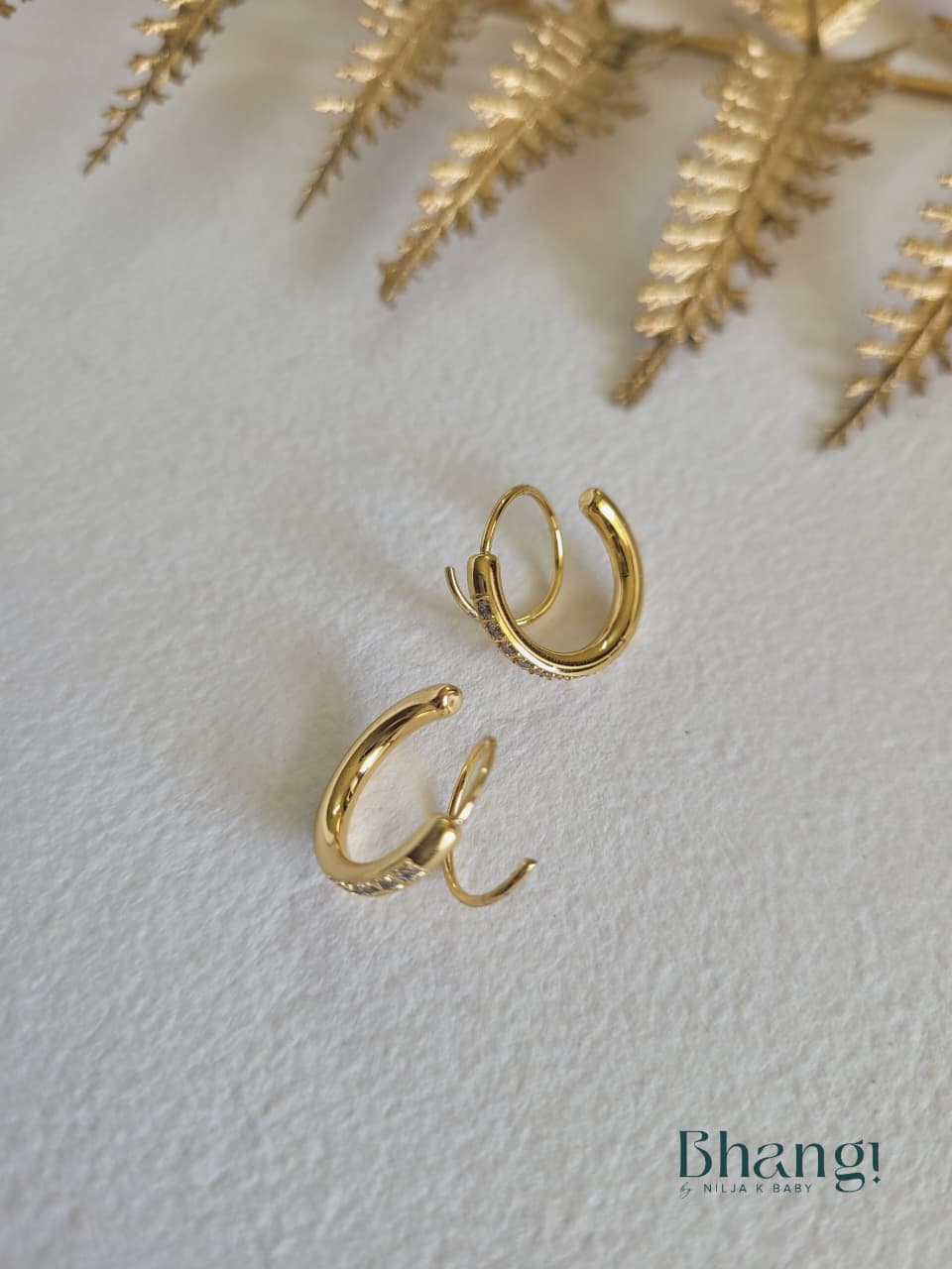 The Solara Hoop Earrings embody the perfect balance of timeless elegance and modern sophistication. With their smooth, sculpted curves and radiant gold-plated finish, these hoops exude quiet luxury that never goes unnoticed. Lightweight yet striking, they are crafted to complement both everyday elegance and statement festive looks.