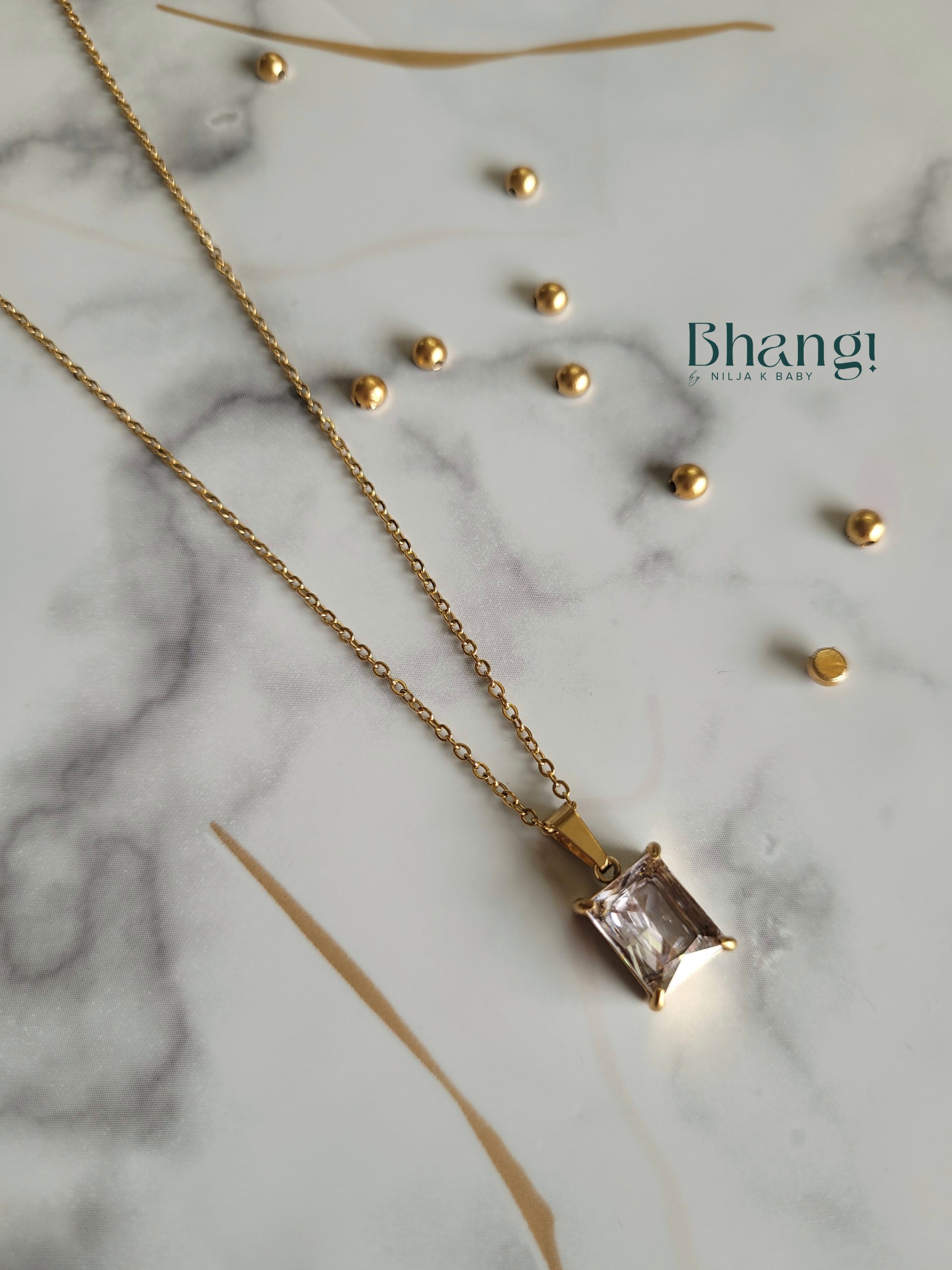 Elevate your everyday style with this classic solitaire pendant necklace from Bhang!. The delicate chain is adorned with a stunning solitaire stone, adding a touch of elegance and sophistication to any outfit. Perfect for layering or wearing alone, this necklace is a timeless piece that will never go out of style.