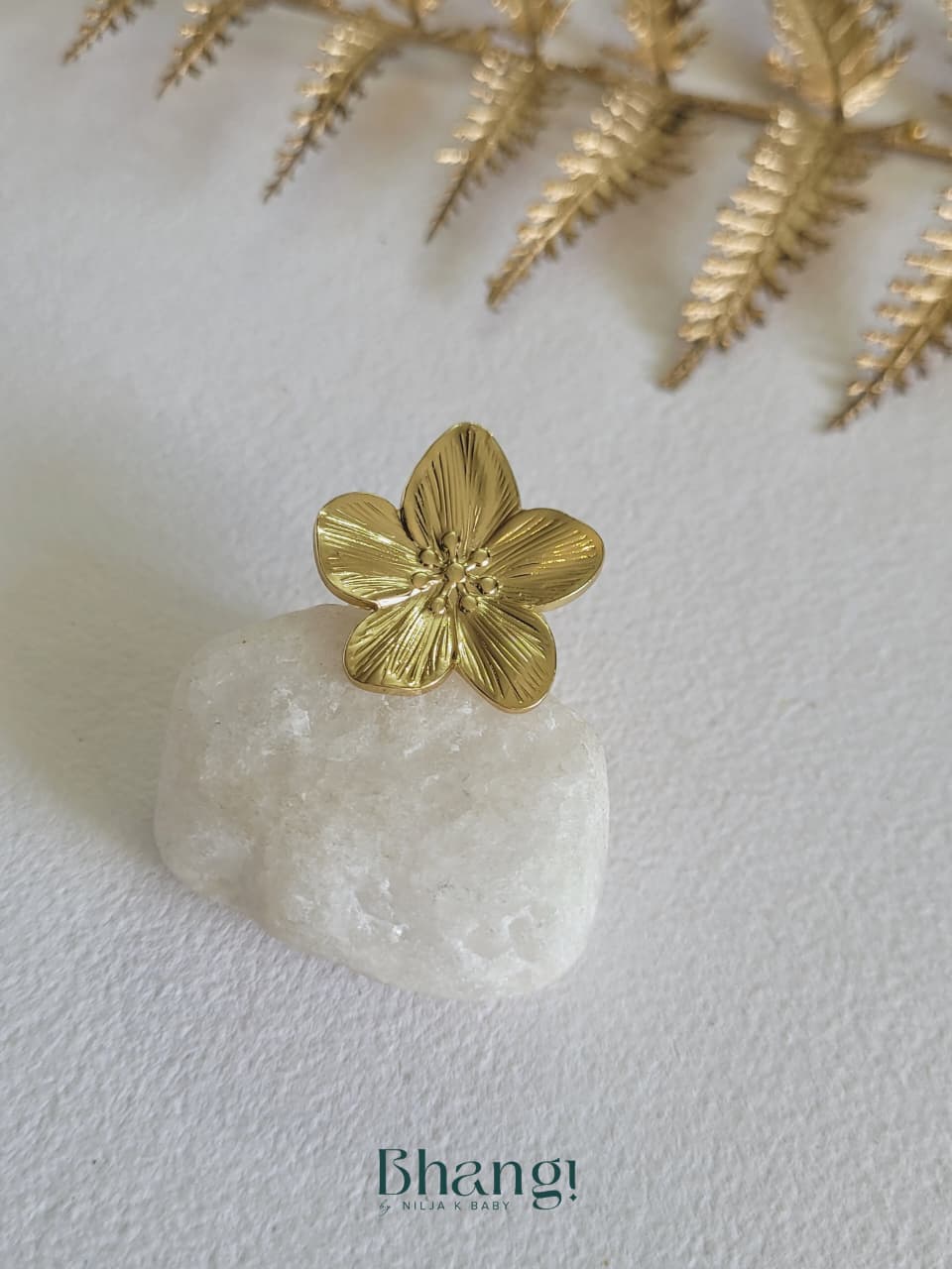 Radiant and graceful, the Golden Blossom Ring blooms with timeless charm. Featuring a delicately detailed flower design, this statement piece celebrates nature’s elegance in a modern golden finish. Perfect for adding a touch of sophistication to your everyday style or elevating festive looks, it’s both lightweight and comfortable. Hypoallergenic and anti-tarnish, this ring is crafted to keep its golden glow as fresh as a new bloom.